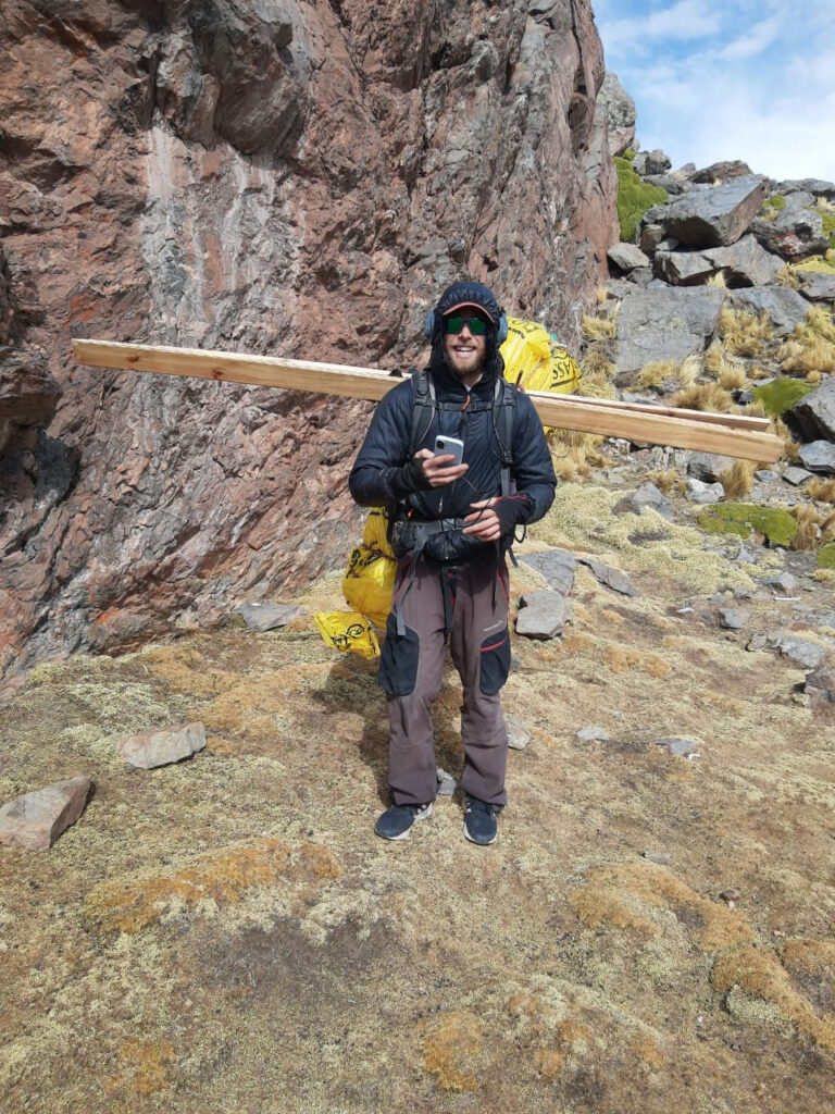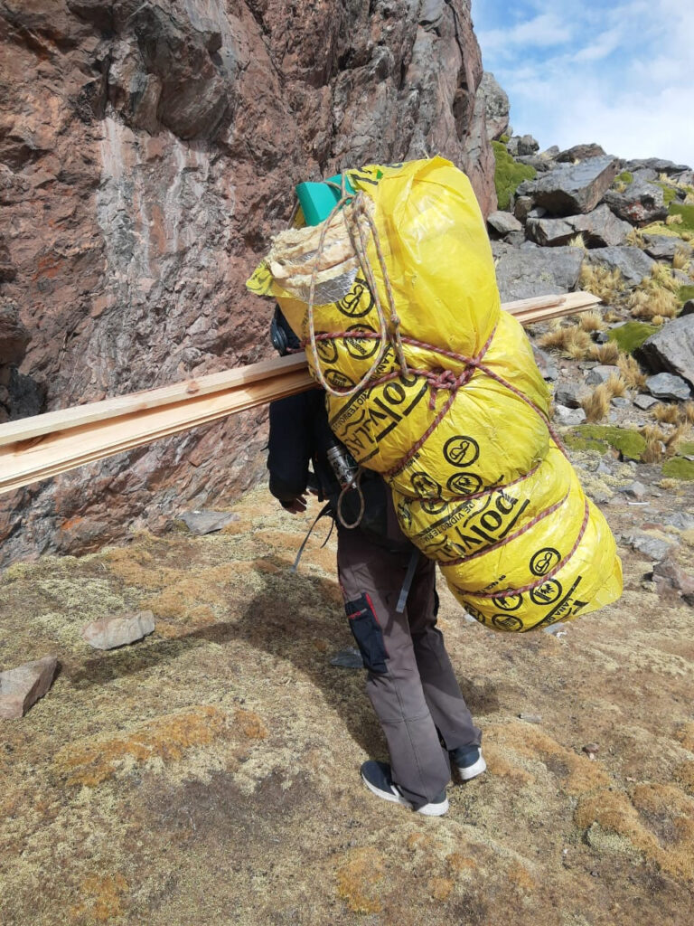 En septiembre del 2021, ya estaba la puerta en la zona del Infiernillo y quedaba hacer el traslado hacia arriba, eso se logró a fines del 2021 con la participación de algunos integrantes del segundo Curso de Iniciación al Montañismo (CIM) que hace todos los años la AAM, que terminaba en noviembre y los compañeros colaboradores del mismo.
