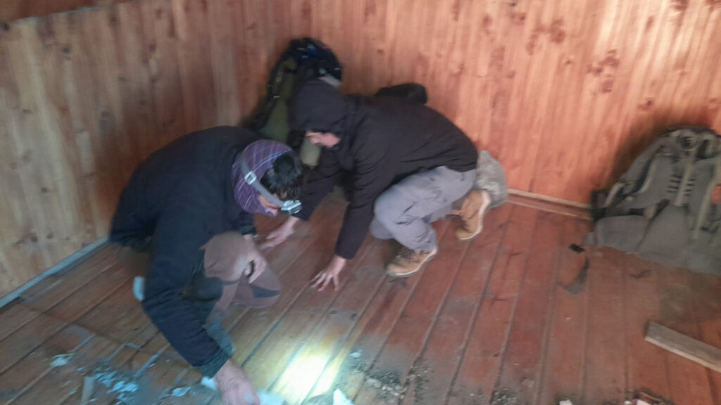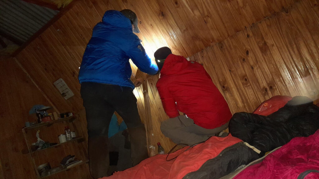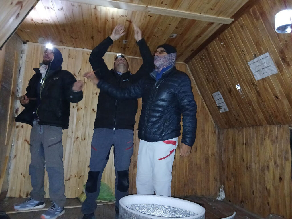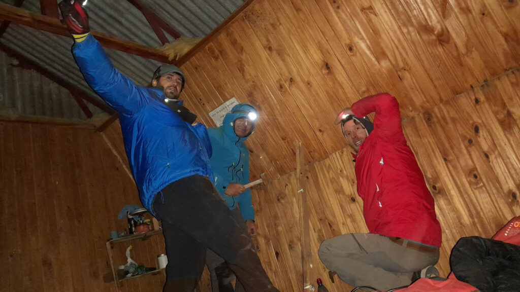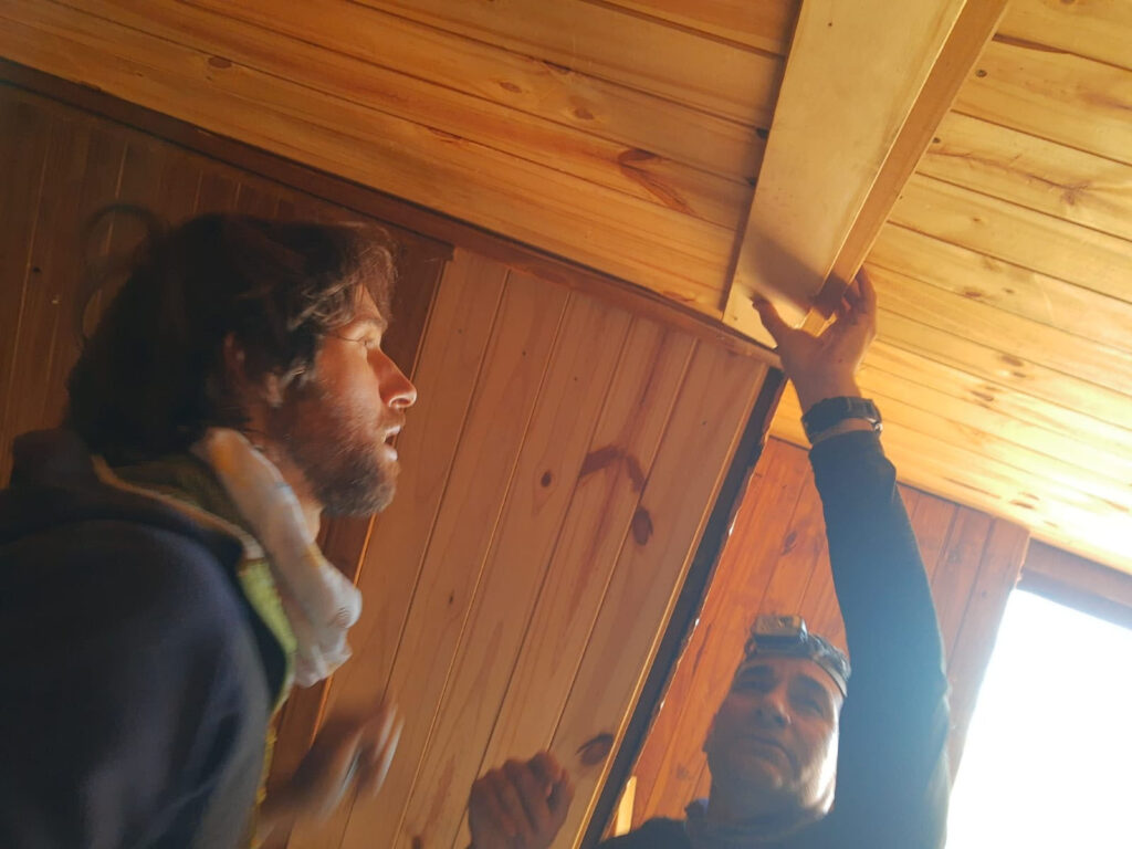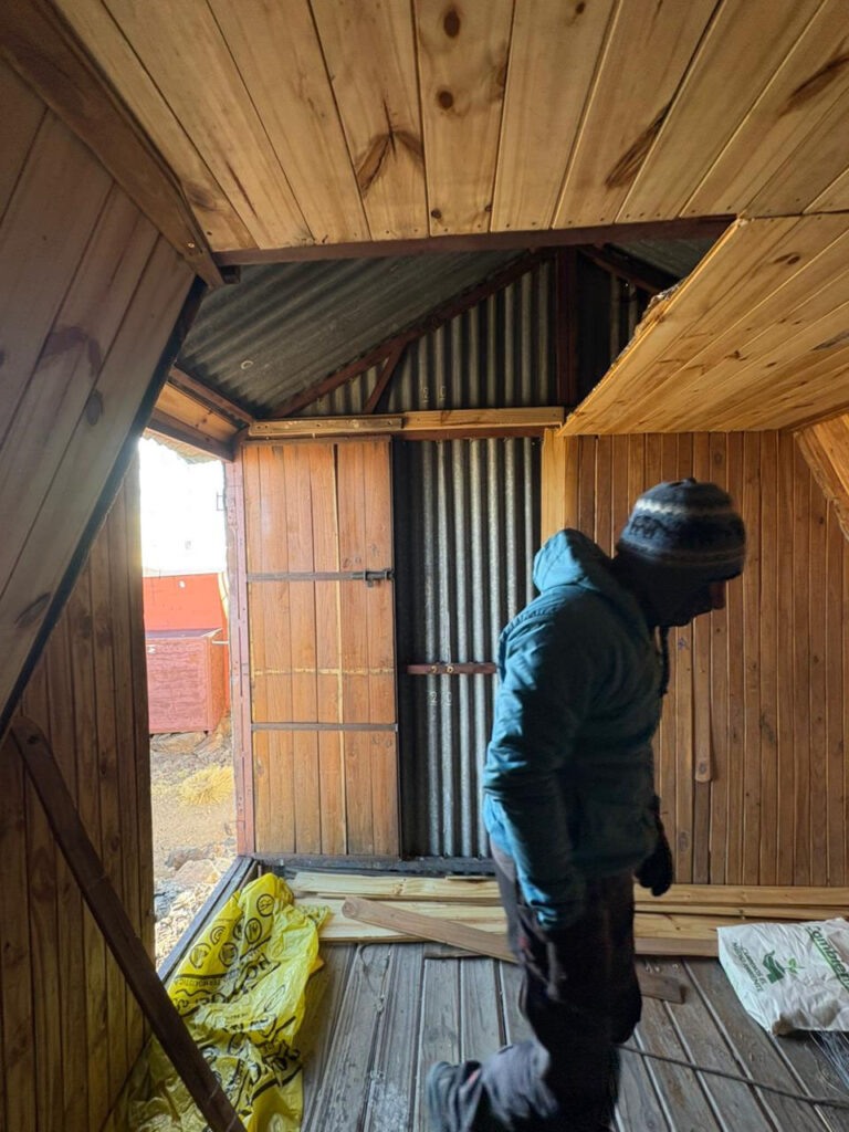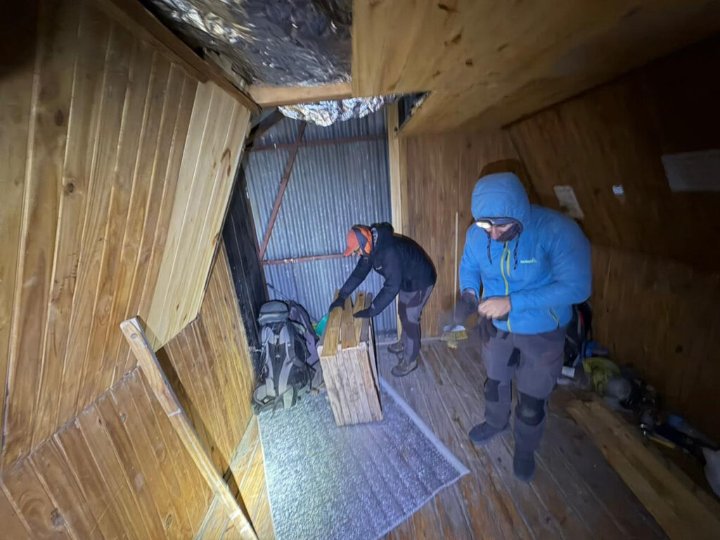 En ese devenir le pedimos que nos hicieran la puerta de la casilla para poder encarar la reconstrucción del Refugio, sin la puerta era imposible plantearse cualquier mejora y que ese lugar fuera útil para alojarse, el viento y el frío hacía impracticable la posibilidad de alojarse allí.