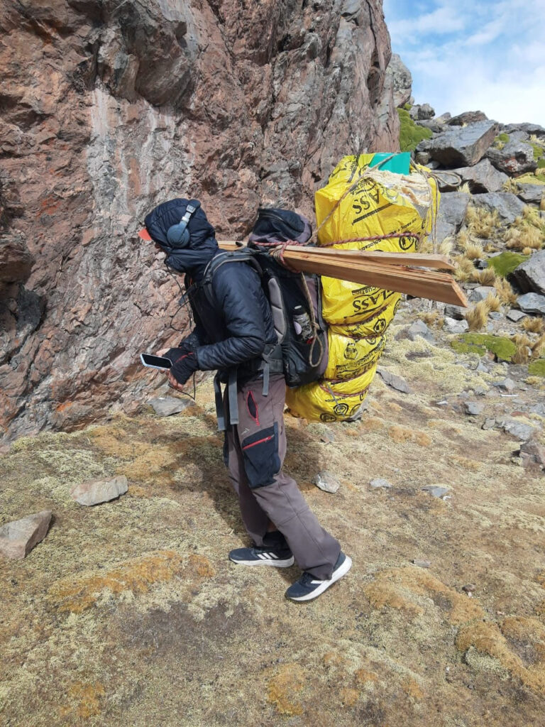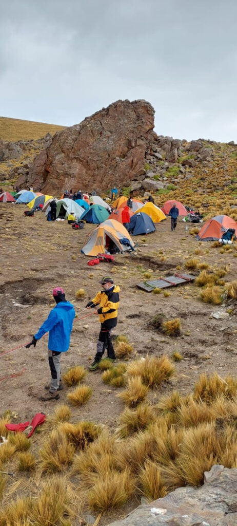 Fueron 5 expediciones, a veces solo a subir materiales, como lo hizo Fernando Carrizo, en solitario y todas las otras veces fue, subir en el dia desde los 450 msnm, hasta los 3.000 msnm en vehículo, y desde allí caminando hasta los 4.620 msnm, para llegar, trabajar ese dia y algunas veces parte del otro y regresar.