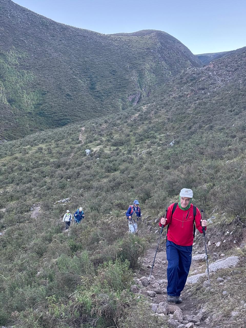 A las 7 y 45 estábamos caminando desde el Barrio Costa 1 (2.110 msnm), en Tafí del Valle. Una recomendación a tener en cuenta son las múltiples sendas que existen debido a los usos que le da la población que vive en su geografía, los puestos que hay al comienzo más los que están más arriba y a ello se le agrega los que transitan permanentemente las personas que vienen desde la población de Mala-Mala en el lado oriental hacia Tafí de Valle y los que van desde Tafí del Valle, hacia Mala-Mala, incluso llevando su ganadería a pastar en el invierno al lado oriental por las mejores pasturas, hay varios puestos muy bien mantenidos, provistos de agua y donde se puede armar carpa cuando se hace la Travesía Nogalito-Tafí del Valle (muy recomendable)